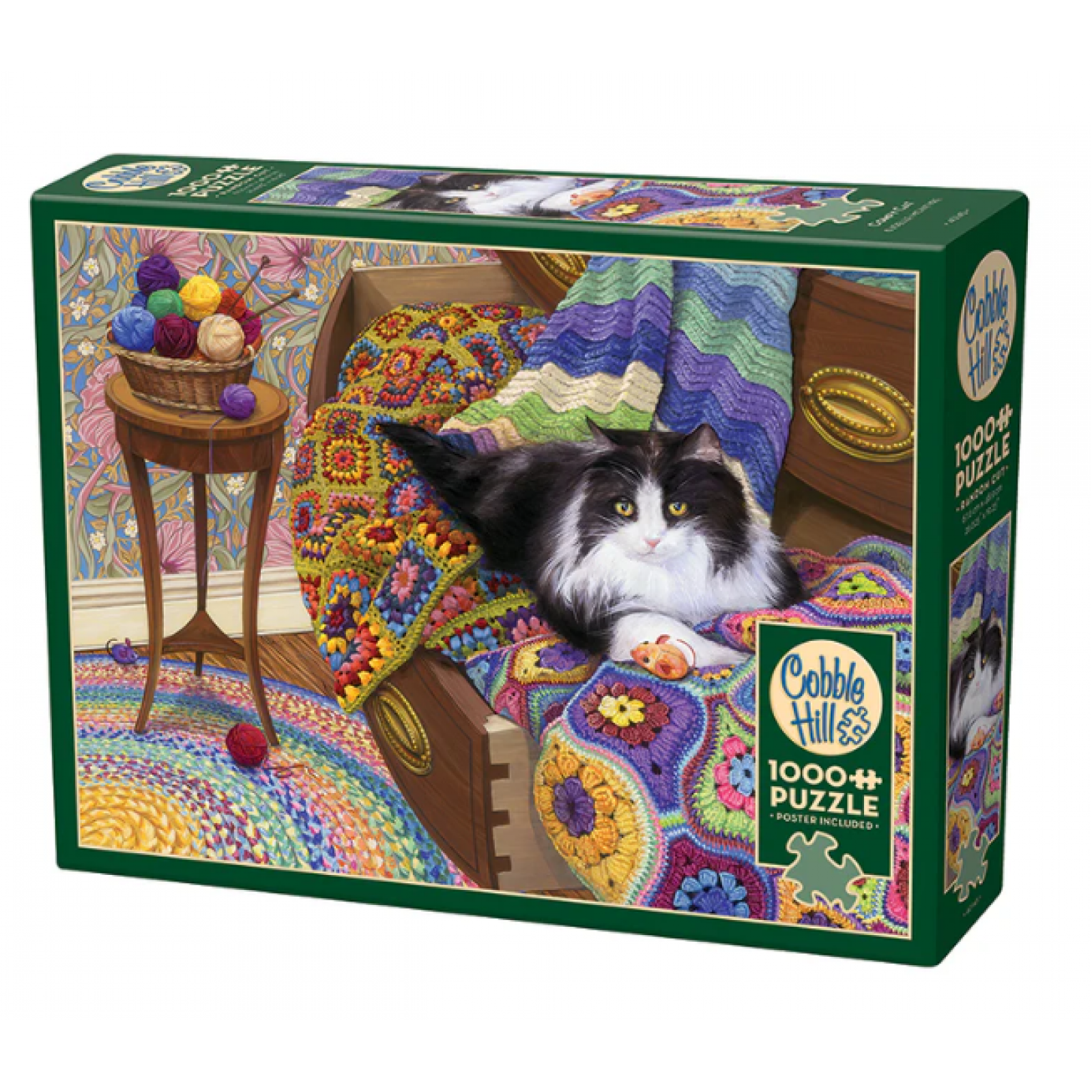 The dresser drawer is the perfect spot for making a Comfy Cat rest soundly. A 1000 piece puzzle full of colourful crochets and knits to keep the cat happy!