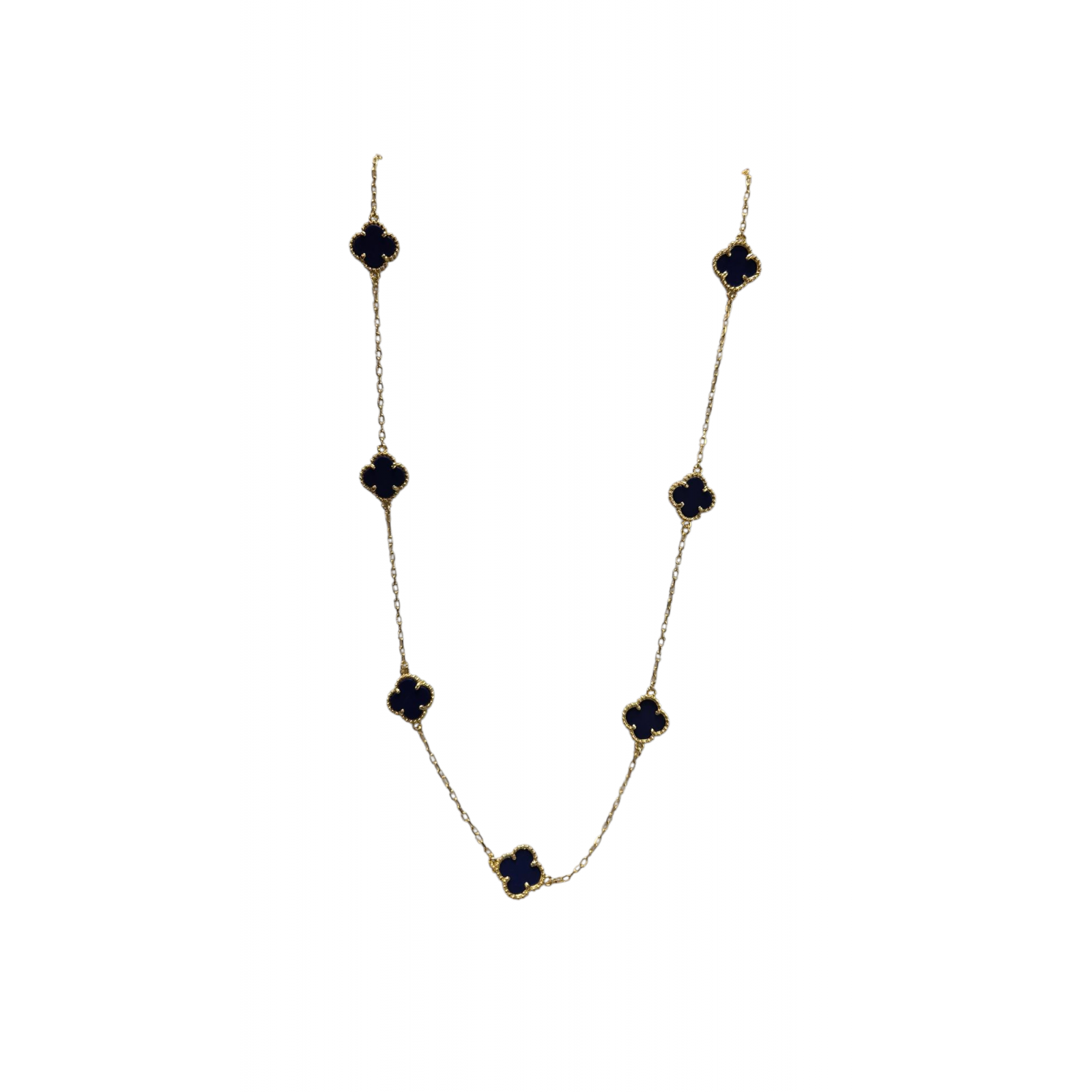 Merx Four Leaf Clover Long Necklace - Gold/Blue Agate #700-119