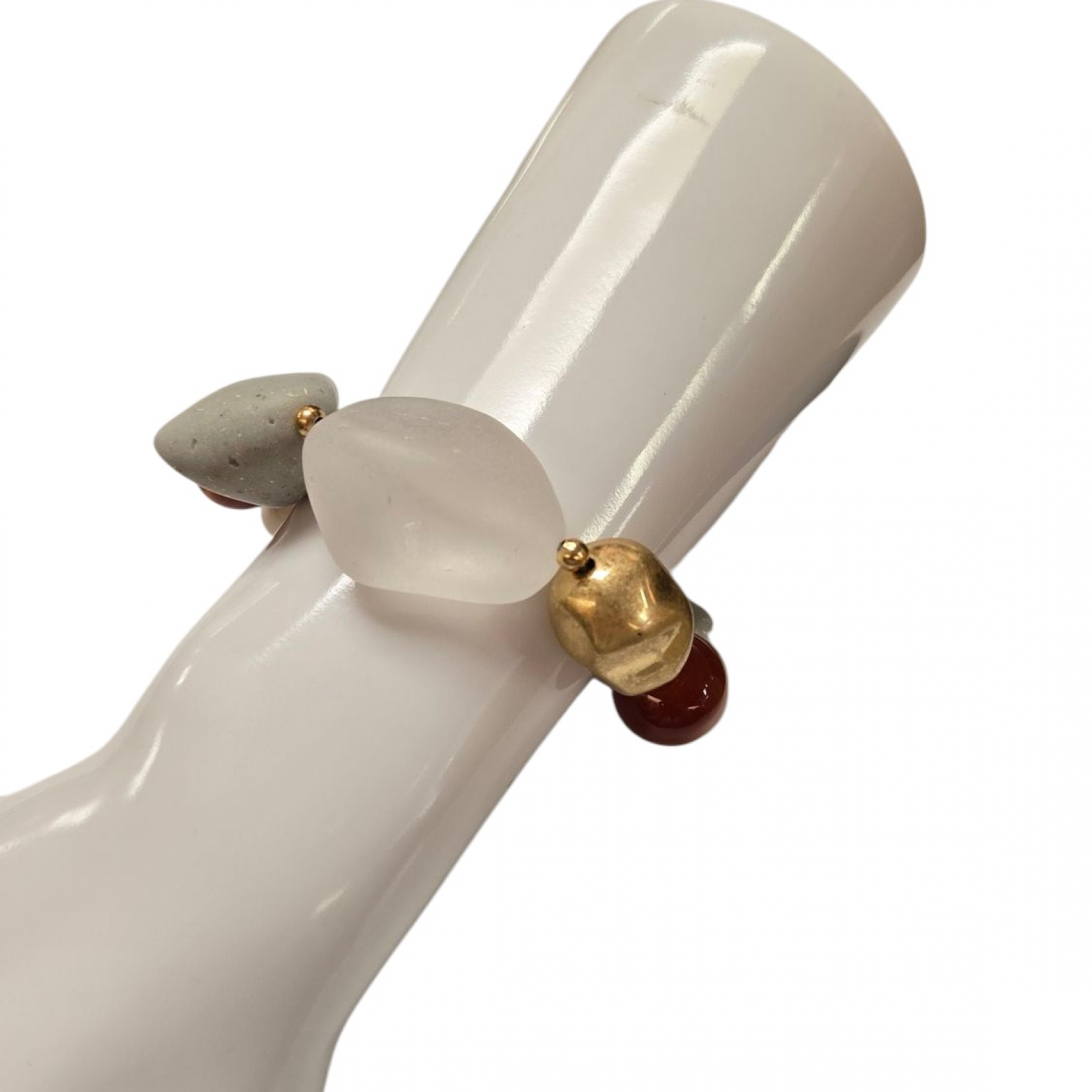 Merx Studio Stretch Bracelet - Gold/Clear Frosted/Carnelian #07-42394-1