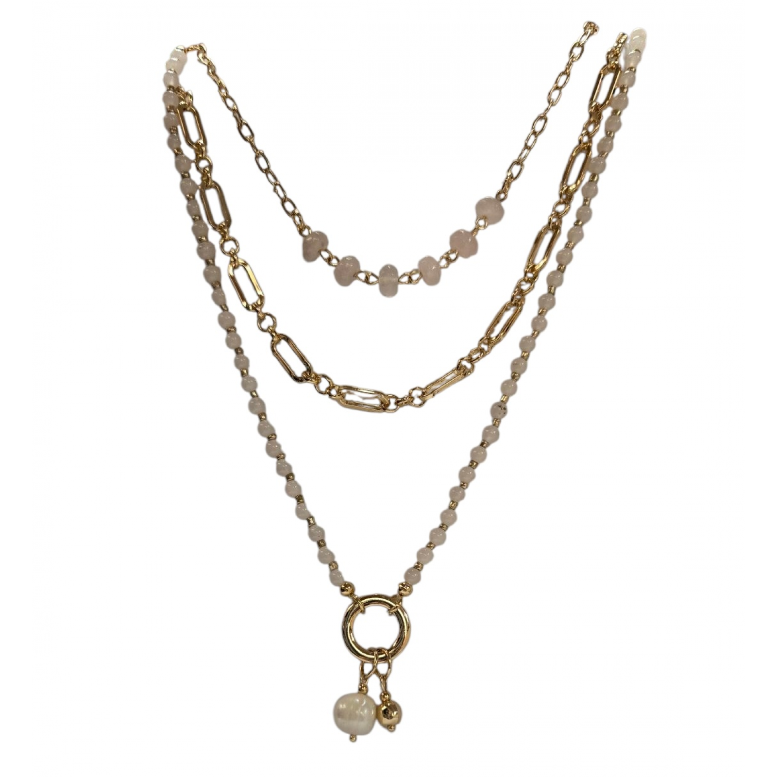 Tags: jewelry, gold, gemstone, stone, white agate, crystal, fashion jewelry, layered, drop, dangle