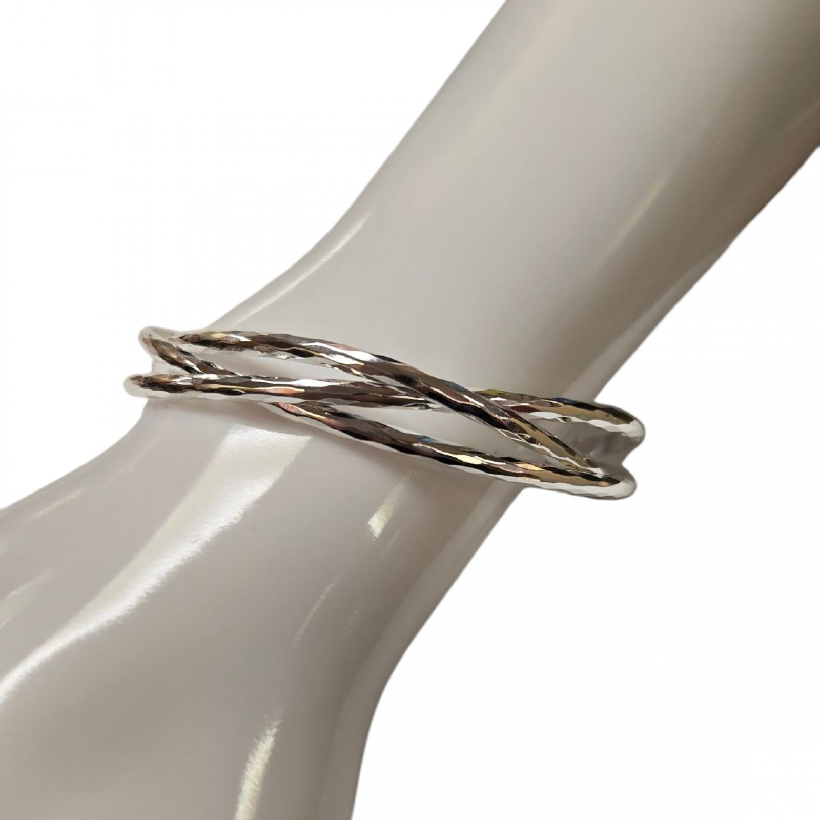 • Merx Fashion Textured Metal Bangle Bracelet - Silver #07-02400