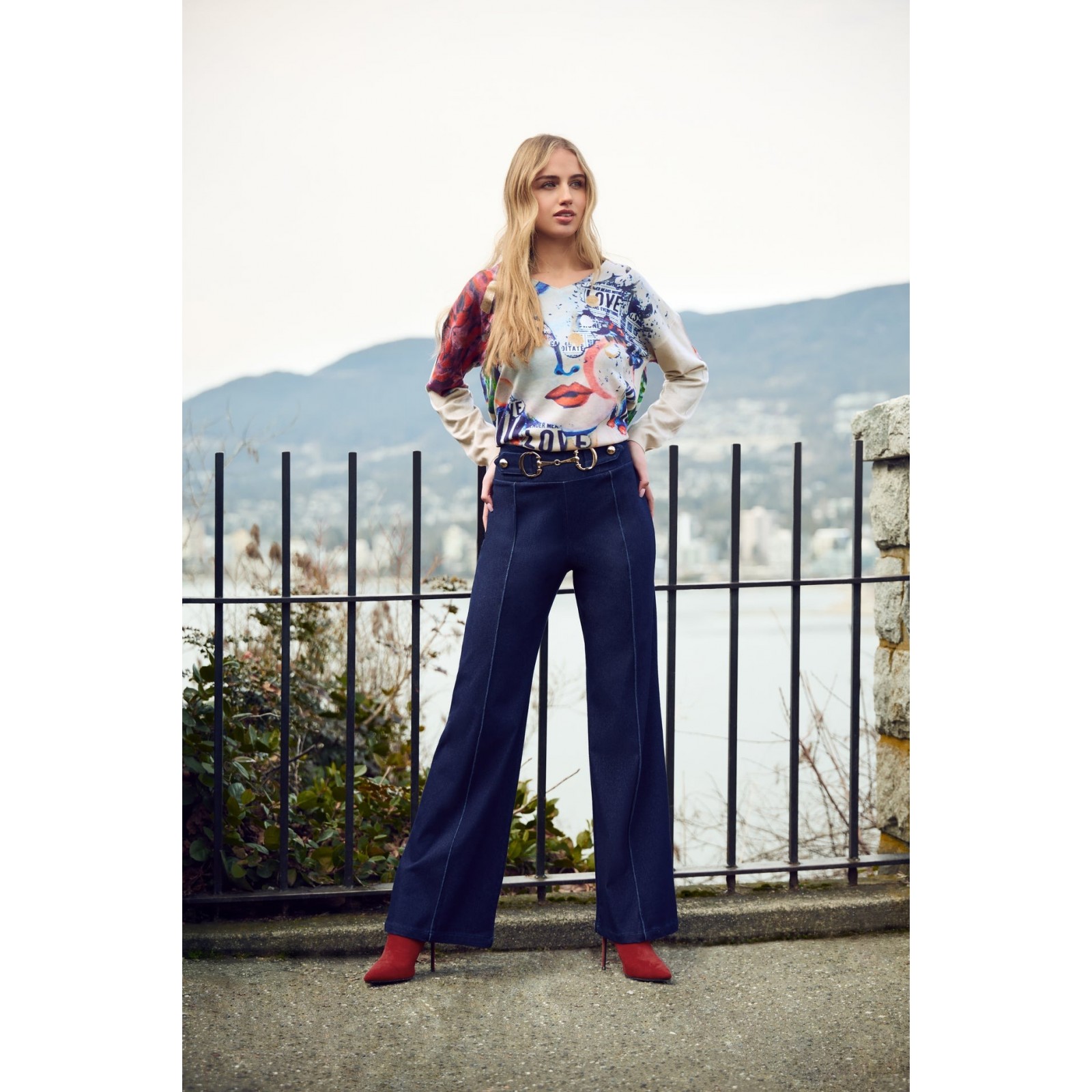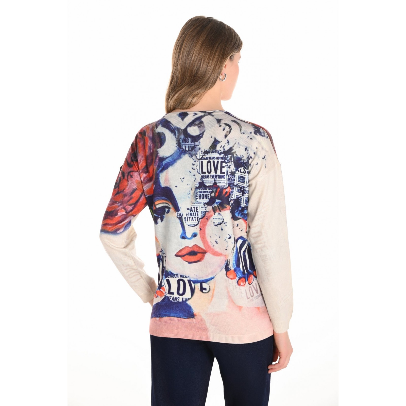 Frank Lyman - Knit Top #253816 - Beige/Blue