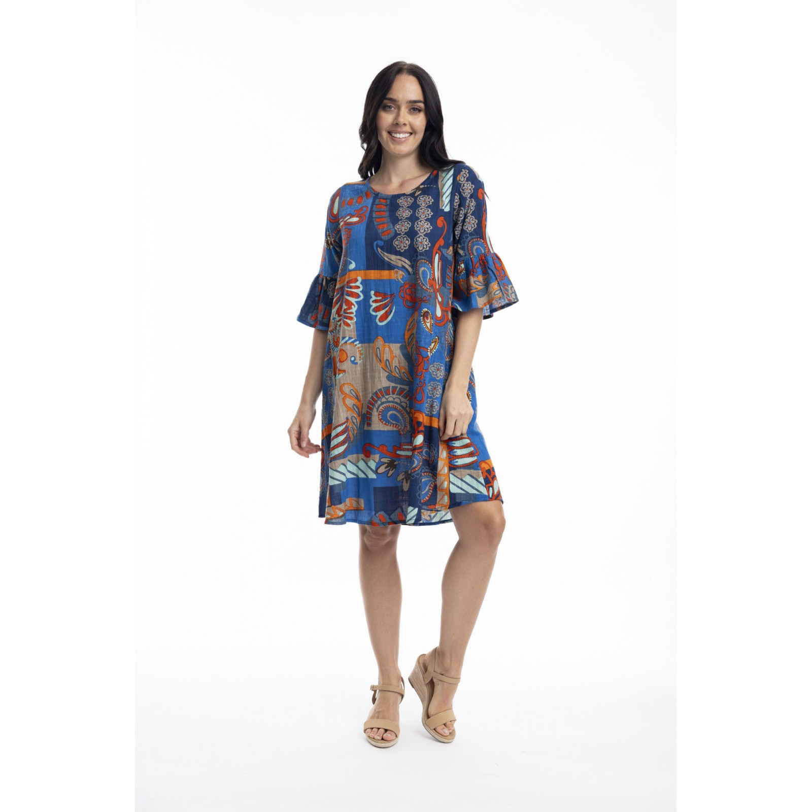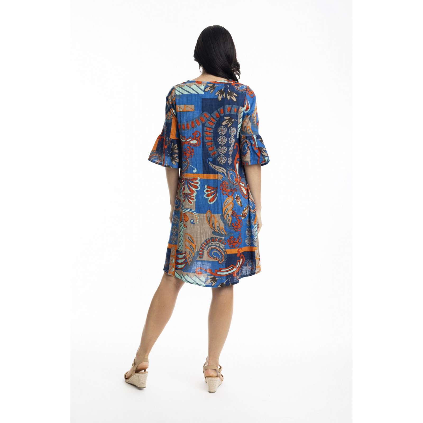 Capture summer vibes with our eye-catching Camps Bay contemporary dress. Featuring a relaxed fit and elbow-length sleeves, this dress showcases beautiful, colourful patterns creating a unique and eye-catching design. Perfect for any casual outing, it offers both style and comfort, ensuring you look effortlessly chic all day.