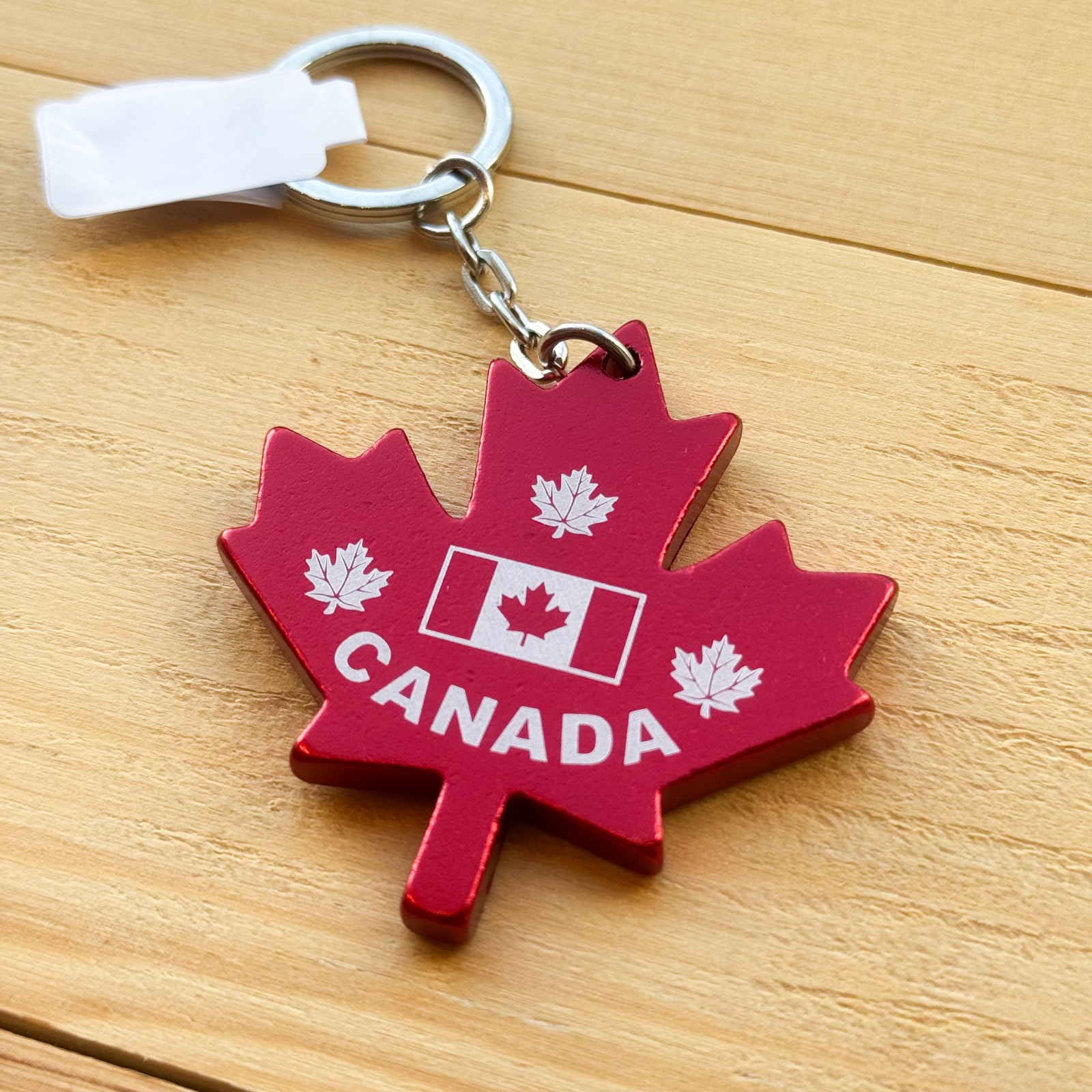 Canada Keychain Aluminum Maple Leaf - Red Canada Flag