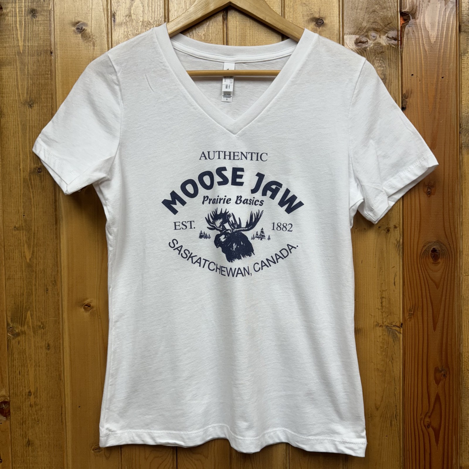 Moose Jaw Prairie Basics T-Shirt Ladies V-Neck White
